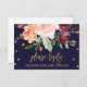 Esta tarjeta de RSVP de elección de menú floral de otoño es perfecta para una boda de otoño. El diseño presenta un impresionante ramo de flores de color rosa, melocotón naranja y burdeos marsala con tipografía de lámina dorada falsa y confeti. Esta tarjeta de respuesta de boda convenientemente pregunta a los invitados qué comida les gustaría en su recepción.