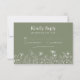 Una tarjeta de RSVP de estilo bohemio que presenta dibujos lineales de flores silvestres en un fondo verde salvia. Puede agregar sus detalles en el menú de personalización. Esta invitación es parte de una hermosa suite de boda que se puede personalizar completamente.