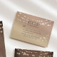 Elegante tarjeta de RSVP rústica para una boda de otoño o granero, con luces de cuerda falsas, encaje floral dorado suave y letra de caligrafía de moda. Un diseño cálido y romántico perfecto para recepciones de otoño o noche. Personalice con opciones de comida para invitados y fecha límite de respuesta. Coincide con el Conjunto de Invitación de Boda de Luces de Cuerda de Madera Rústica.