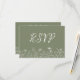 Una tarjeta de RSVP de estilo boho que presenta dibujos lineales de flores silvestres en un fondo verde salvia. Puedes agregar tus detalles en el menú de personalización. Esta invitación es parte de una hermosa suite de boda que se puede personalizar completamente.