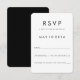 Esta es una tarjeta de RSVP de boda con diseño moderno y respaldo de color negro. La invitación, el sobre y las etiquetas también están disponibles para completar su suite de invitaciones de boda.