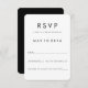 Esta es una tarjeta de RSVP de boda con diseño moderno y respaldo de color negro. La invitación, el sobre y las etiquetas también están disponibles para completar el conjunto de invitaciones de boda.