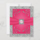 Esta tarjeta de respuesta floral de color rosa intenso y efecto de lámina plateada FALSA (efectos impresos) con una cinta impresa en color fucsia y una medalla plateada con aspecto de grabado falso coincide con la invitación de boda de primavera o verano que se muestra a continuación. Todo el texto es personalizable, al igual que la elección del papel. Si necesita ayuda para personalizar esta tarjeta, o si requiere otros elementos coincidentes en este mismo diseño, por favor envíe su solicitud por correo electrónico a niteowlstudio@gmail.com.