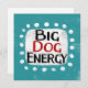 "Big Dog Energy" es un lindo diseño de texto en azul con texto en negro y rojo, junto con una forma de acento blanco y puntos caprichosos de textura blanca que lo rodean.