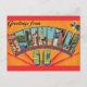 Una tarjeta postal de saludo vintage y colorida de Greenville, Carolina del Sur, reutilizada como una nueva tarjeta postal.