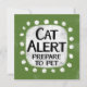 Un diseño tipográfico de animales irreverente y lindo que dice "Alerta de gato, prepárate para el Mascota". Presenta texto en negro y rojo sobre un rectángulo blanco con puntos blancos divertidos y juguetones rodeándolo, todo sobre un fondo gris.