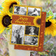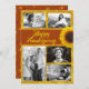 Tarjeta de felicitación con foto del Día de Acción de Gracias con girasol. Tarjeta naranja rojizo y amarilla con saludo y cinco plantillas para fotos de la familia, niños, mascotas o lo que quieras. Las fotos de muestra están en blanco y negro, pero las tuyas no tienen que serlo. Este diseño también se ofrece como descarga instantánea para compartir digitalmente.