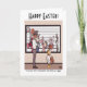 Una tarjeta de saludo con un divertido y lindo cartoon sobre un pollo que identifica a un ladrón de huevos de Pascua de una fila de varios conejos. Arte original de DBcartoons. El fondo y la imagen se pueden personalizar.