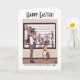 Una tarjeta de saludo con un divertido y lindo cartoon sobre un pollo que identifica a un ladrón de huevos de Pascua de entre una hilera de varios conejos. Arte original de DBcartoons. El fondo y la imagen se pueden personalizar.