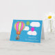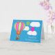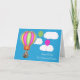 Desee a su hija un cumpleaños feliz con un mapache adorable flotando en un cielo azul bonito en un globo de aire caliente colorido con un magenta y un globo verde flotando frente a las nubes blancas onduladas.