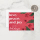 Difunde la alegría de las vacaciones con esta tarjeta de felicitación de las fiestas festivas felices! Con un diseño acogedor y colorido perfecto para las vacaciones, esta tarjeta capta el espíritu de los Navidades con sus cálidos deseos y alegres obras de arte. Ya sea para la familia, amigos o seres queridos, esta tarjeta es una excelente manera de celebrar la magia de la temporada. Ideal para enviar mensajes de amor, alegría y paz, trae un toque de brillo de vacaciones a cualquier buzón de correo del destinatario. Perfecto para quien ame la decoración navideña, los colores festivos y la alegría de las vacaciones invernales.