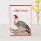 Tarjeta de saludo de vacaciones con un lindo loro gris africano con un sombrero de Papá Noel sosteniendo un bastón de caramelo. Perfecto para el dueño de un loro o para cualquiera que ame los pájaros lindos.