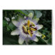 Esta tarjeta de saludo cuenta con una fotografía muy detallada de una hermosa y exótica flor de pasión. La foto fue tomada usando macrofotografía, resultando en una imagen tan detallada que se puede ver cada pétalo individual. Los colores de la imagen son vivos y luminosos.
