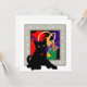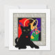 Pequeño y dulce gato negro con ojos dorados y un corazón de amor en el pecho rodeado de un marco Art Nouvea ornamentado. Artista, Margaret Loftin Whiting.
