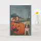 Tarjeta de felicitación Retro / Vintage Halloween. ¡Adorables cachorros y un lindo gatito jugando en una linterna! Los perros y gatos están fuera esta noche, así que ¡uuuuuuu-uuu-uu no ver!