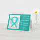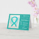 La tarjeta de felicitación o nota del ángel de la guarda muestra la imagen de una pintura de ángel de la cinta de conciencia verde azulada. La tarjeta dice "¡Espero y apoyo la toma de conciencia por una cura para el cáncer uterino!" Añade tus propias palabras o mensajes opcionales a la tarjeta de felicitación para que el arte ángel personalizado cause la conciencia de los avisos! También puede quitar el texto de las tarjetas de notas de ángel sólo de arte. Las verde azuladas tarjetas de felicitación artística de la cinta del ángel de la conciencia se pueden personalizar con mensajes personalizados para crear una gran conciencia de causa de tarjetas de arte para recaudadores de fondos, regalos de concientización u otros eventos especiales. Dé esta carta de arte de ángel como regalo para cualquier ocasión.