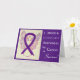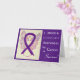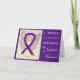 El saludo de ángel de la guarda o la tarjeta de nota muestra la imagen de una pintura de ángel de la cinta púrpura. La tarjeta dice "¡Espero y apoyo la toma de conciencia por un sobreviviente de cáncer!" ¡Añade tus propias palabras o mensajes opcionales a la tarjeta de felicitación para los ángeles de arte personalizados y para los guardianes de la conciencia! También puede eliminar el texto de las tarjetas de notas de ángel de sólo arte. Las tarjetas de saludo de arte de la cinta de arte de la cinta de ángel de la conciencia púrpura se pueden personalizar con mensajes personalizados para crear gran conciencia de la causa de las tarjetas de arte para recaudadores de fondos, regalos de concientización u otros eventos especiales. Dé esta tarjeta de arte de ángel como regalo para cualquier ocasión.