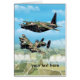 Tarjeta de aviación de estilo personalizado que muestra una caricatura de Lancaster y Wellington volando juntos
