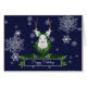Navidades extendidos aplauden esta temporada navideña con una tarjeta de saludo de Navidad para los renos azules. El diseño de la tarjeta de felicitación incluye un reno festivo con una corona de Navidades adornada con bayas y copos de nieve que caen y una caja de saludo de vacaciones decorada con guirnaldas de vacaciones. También hay artículos de regalo y de vacaciones disponibles con este diseño.