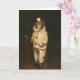Esta tarjeta se ilustra con un mono mágico vintage en un traje de payaso.