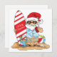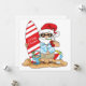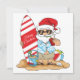 Tarjeta de saludo de Papá Noel en tabla de surf