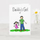 Padre e hija se toman de la mano. La camisa del padre dice "papá" y la camisa de las niñas dice "yo". La familia es asiática con piel clara. Las palabras arriba de la familia dicen "Chica de papá". La imagen viene en versiones de la familia étnica, incluyendo una versión de dibujo de color sin color también. Personalizar esta tarjeta de nota con tu mensaje de saludo personalizado para hacer una tarjeta especial de saludo personalizado para el Día del Padre, nuevos padres, reuniones familiares u otros feriados especiales de familia.