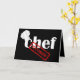 Un diseño gráfico del chef de textos con un gorra del chef estampado Retirado en una tarjeta de felicitación para el chef. La tarjeta tiene un versículo de personalizable y una plantilla de texto para su nombre. ©2012charmainepaulson