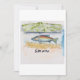 Tarjeta de saludo con una imagen de un salmón pintado a mano.
