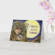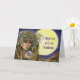 Una doncella de bosque sostiene el otoño pasado mariposa en una mágica esfera que simboliza el espíritu de las almas. Las hojas de otoño adornan su cabello con ramas y plumas de faisán. La luna llena en el fondo con las palabras "Un deseo para ti en Samhain. Dentro de un hermoso saludo y deseo de Samhain.