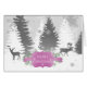 Navidades extendidos aplauden esta temporada navideña con una tarjeta de felicitación navideña de invierno. El diseño de las tarjetas de felicitación presenta una escena de maravilla de invierno gris y blanco con ciervos y renos adornados con copos de nieve cayendo y una lujosa etiqueta magenta con un saludo de vacaciones. También hay artículos de regalo y de vacaciones disponibles con este diseño.