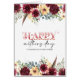 Rojo y blanco con flores de verano de acuarela marco de la carta del Día de la Madre con tipografía elegante del Día de la Madre Feliz Día y mensaje de texto de personalizable en gris y rojo.