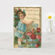 Tarjeta de saludo de Vintage/Victorian Mother's Day. ¡Adorable chica victoriano con una cesta de flores y una nota para mamá! ¡Sólo Una Línea De Tu Querido Bebé! ¡Hermosa tarjeta de saludo para mamá!