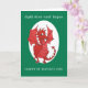 Una tarjeta de saludo bilingüe para el Día de San David, con un tierno dragón rojo de una pintura de color de Judy Adamson.