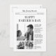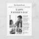 Diga Feliz Día del Padre con esta tarjeta de felicitación al estilo de un periódico. Personalizable completo para que puedas ser creativo y crear un keepsake personalizado que a papá le encantará. Presentando el texto "Feliz Día del Padre" y un mensaje de amor y fotos familiares. Diseñado para parecerse a un periódico vintage, cuenta con titulares personalizados, texto y la foto de su elección. Más que una carta normal, es un placer para papá por la vida. En blanco para tus firmas personales escritas a mano.