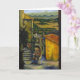 El estilo increíble de KiKi representa una calle lateral en un antiguo pueblo italiano donde el hombre aceituna recoge su cosecha en su cesta.