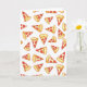 Este divertido y moderno patrón de pizza es sólo lo mejor para cualquier amante de los pepperoni. Patrón de fisuras a mano de rodajas de pizza de pepperoni cursi impresas en una tarjeta de saludo en blanco.
