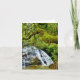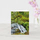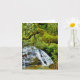 Tarjeta de saludo doblada con foto de una cascada en un entorno verde. Mensaje en blanco.