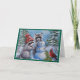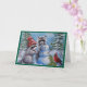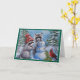 Tarjeta de saludo en blanco de mapache, cardenal y