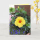 Esta es una fotografía de un Hibisco amarillo con Lobelia azul. Crédito de la foto: Mimi Zahn