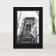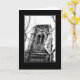 Un campanario gótico se levanta sobre los árboles en esta tarjeta de saludo en blanco. Parte de La colección gótica.