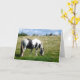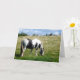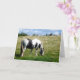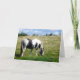 Un caballo blanco y negro/poni pastoreando en el fondo de una colina de hierba. La tarjeta se deja en blanco dentro. Perfecto para dar a un caballo o amante del pony en su cumpleaños, para decir gracias, o en cualquier otra ocasión. Fotografía © Lisa Marie Robinson