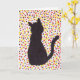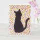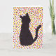 Gato negro (o, silueta de cualquier felino de color). Los puntos dispersos en rojo, amarillo y negro como fondo. Se puede cambiar el texto interno, por defecto: "¡Desearía que estuvieras aquí!"