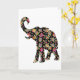 Este diseño de tarjetas de felicitación rinde homenaje al elefante, una de las criaturas más inteligentes del mundo (más inteligente que el hombre, pero enfrentémoslo, ¡no es difícil!). Este elefante en particular tiene un giro hippie, con círculos psicodélicos ultra coloridos que componen su patrón hipnótico.