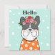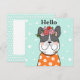 Lindo Bulldog Francés con corona boho de flores en la cabeza.
