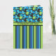 Una tarjeta de saludo de moda para personalizar para cualquier ocasión, con un patrón mixto de franjas de tumbona, en equipo con un patrón de luna azul en verde neón, turquesa y verde esmeralda sobre un fondo negro. Parte de la gama de "Blue Moons" de Posh & Painterly.