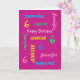 Qué maravillosa tarjeta de saludo personalizada para un sexto cumpleaños o cualquier otra ocasión. En la portada, Nombre y edad se repite en diferentes tipos de letra y colores en un fondo rosado caliente. Fácil de personalizar: simplemente CAMBIAR NOMBRE, EDAD y OCASIÓN EN UN SOLO LUGAR. Admite un nombre de hasta 9 caracteres. Una tarjeta de cumpleaños colorida y divertida. ¡A los niños, adolescentes y adultos les encantará! También es fácil modificar el texto interno, si lo desea. Todos los derechos reservados © 2015 Marcia Socolik.