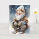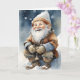Tarjeta de saludo plegada adorable gnomo en nieve