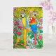 Original acuarela de coloridos loros tropicales de Macaw de la artista animal Carolyn McFann de Two Purring Cats Studio impreso en una tarjeta de felicitación de calidad para los amantes del loro de todas las edades. ¡Ideal para el cumpleaños, Bon Voyage o fiesta de playa!