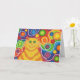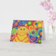 ¡Bebé! Un gato amarillo y naranja a rayas con bigotes giratorios y un fondo sicodélico con motivos de arco iris. Tarjeta de felicitación con un diseño de personalizable amarillo, naranja, rojo, azul, verde, rosa, púrpura y blanco para que pueda personalizar con su propio texto, imágenes e ideas. El texto puede cambiarse fácilmente utilizando la plantilla proporcionada o haciendo clic en el botón "Personalizar" para realizar más modificaciones. Dibujo original de lápiz de colores realzados digitalmente por Jess Perry.