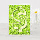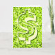 Tarjeta de felicitación con un diseño impreso moderno con estrellas diseminadas sobre un estilizado fondo de patrón "secuin look" y '$' en tonos verde lima. Un diseño de personalizable para que puedas personalizar con tu propio texto, imágenes e ideas. Tenga en cuenta que esta es una imagen de arte digital impresa. El producto no brilla ni contiene purpurinas o secuencias reales.